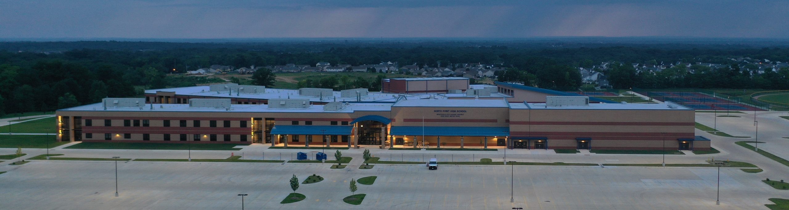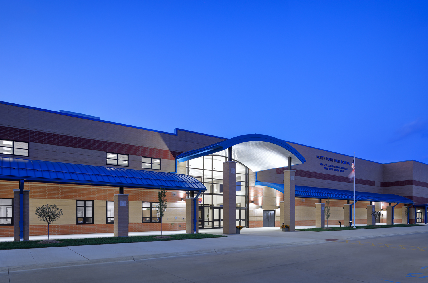 North Point High School is the highest dollar value project ever to be constructed for the Wentzville R-IV School District. The project package consists of a two-story main school building, with approximately 320,000 SF of usable space including a precast concrete storm shelter.