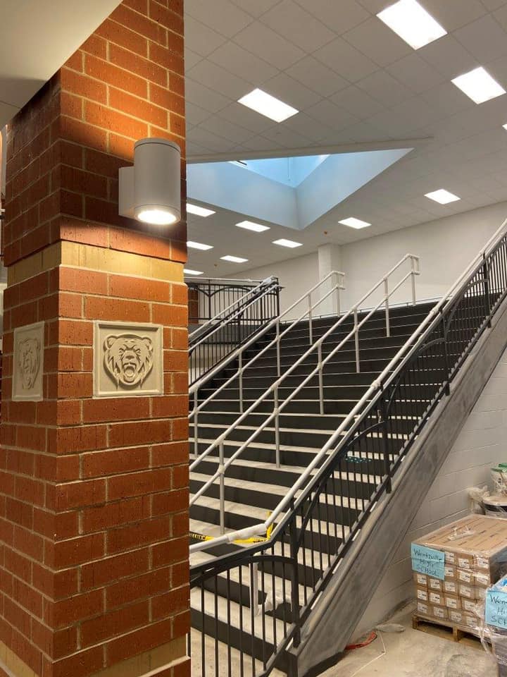 The project scope also includes a full-scale athletic complex boasting a press box, concession building, two baseball fields, softball field, eight tennis courts, soccer field, a synthetic turf football field, and complete track and field area. The campus sits on 100-acre site that will house the new middle school, also constructed by Wright Construction, and space for future development. The high school was completed in 2021.